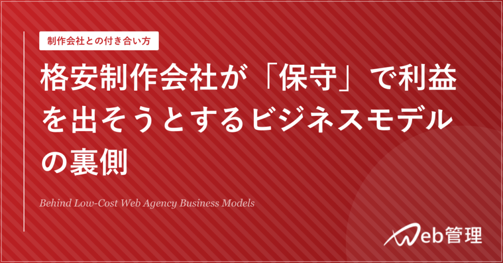 2026/2/24ホームページ保守・管理格安制作会社が「保守」で利益を出そうとするビジネスモデルの裏側