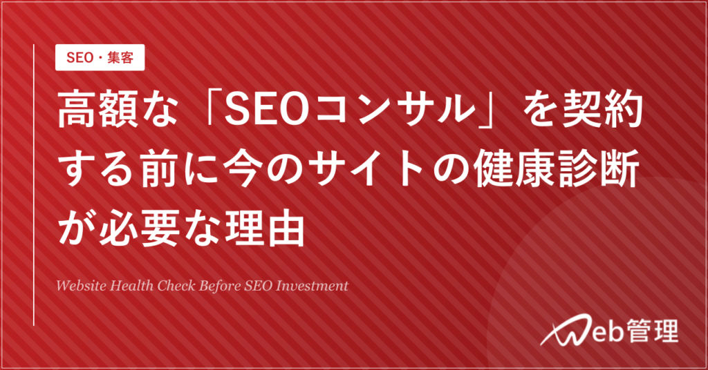 2026/3/10ホームページ運用高額な「SEOコンサル」を契約する前に今のサイトの健康診断が必要な理由